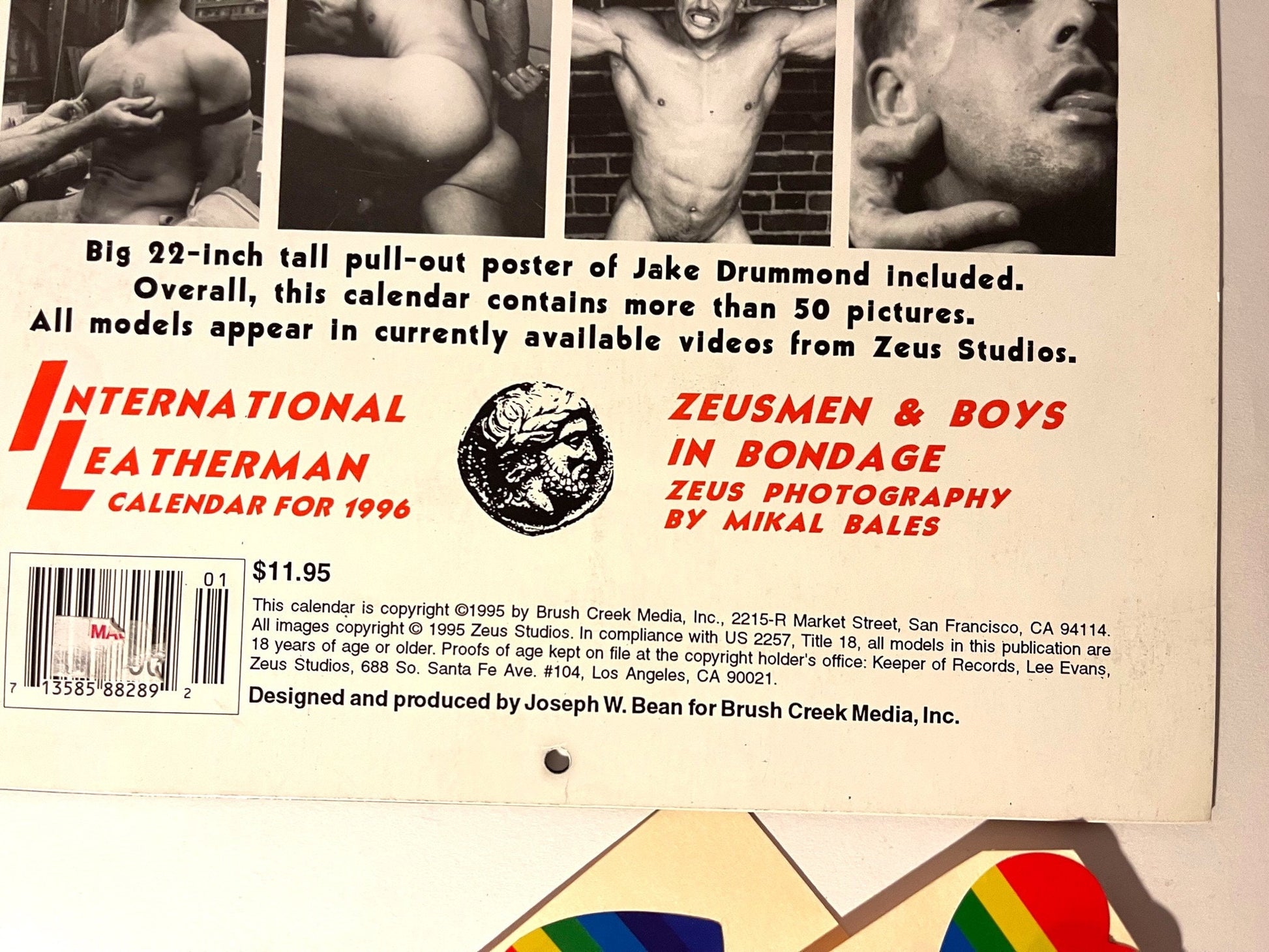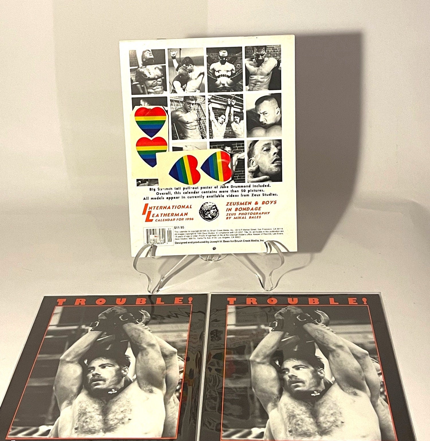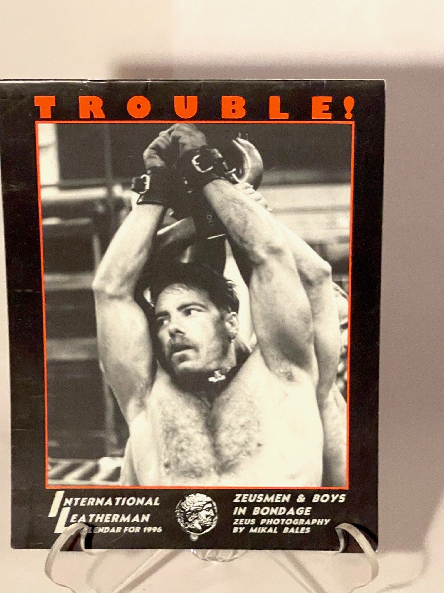 Trouble! International Leatherman calendar for 1996; including the 22" tall pull out poster of Jake Drummond Zeusmen by Mikal Bales. Mature